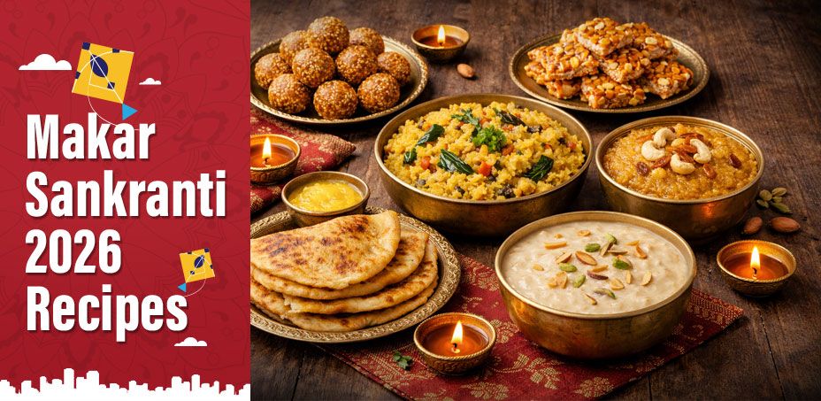 Celebrate Makar Sankranti 2026 with traditional Indian recipes like til gul laddu, chikki, khichdi, sweet pongal, puran poli, and easy festive cooking tips.